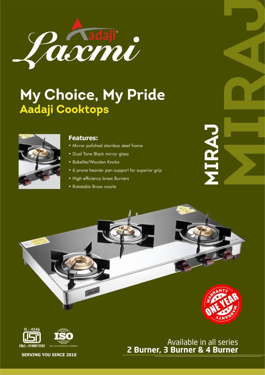 Aadaji Miraj Cooktop Dual Tone Black Mirror Glass 6-prone Havier Pan Support for Superior Grip Mirror Polished Stainless Steel Frame High Efficiency Brass Burners Rotatable Brass Nozzle Wooden/Backlite Knobs Category: Aadaji Laxmi Gas Stove Tags: aadaji, cook-top, gas stove, miraj, royal-india Description Reviews (0) Description Available in 2, 3 & 4 Burners Reviews There are no reviews yet. Be the first to review “Aadaji Miraj Cooktop” Cancel replyYour email address will not be published. Required fields are marked *Your rating * Rate… Perfect Good Average Not that bad Very poor Your review *Name * Email * Save my name, email, and website in this browser for the next time I comment. Related products NewTriply Cooker/Triply ProductsTriply Cooker Read more NewAadaji Laxmi Gas StoveAadaji Laxmi Ford Series Cooktops Read more NewTriply Fry-Pan/Triply ProductsTriply Fry-Pan Read more